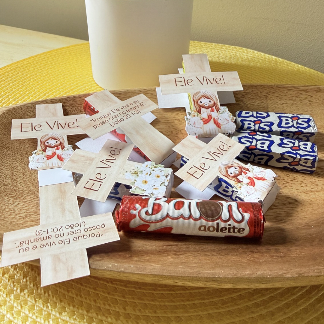 Combo especial para você presentear de forma criativa e significativa nesta Páscoa !!! Nosso kit contem 2 modelos diferentes para chocolate baton e bis, perfeito para o culto de Páscoa!